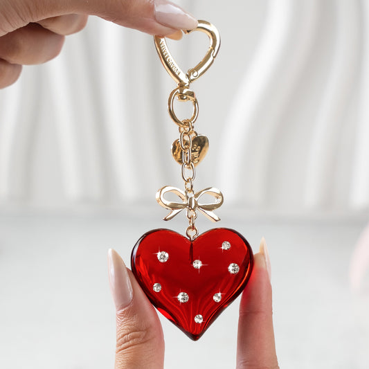 Red Crystal Heart Bag Charm