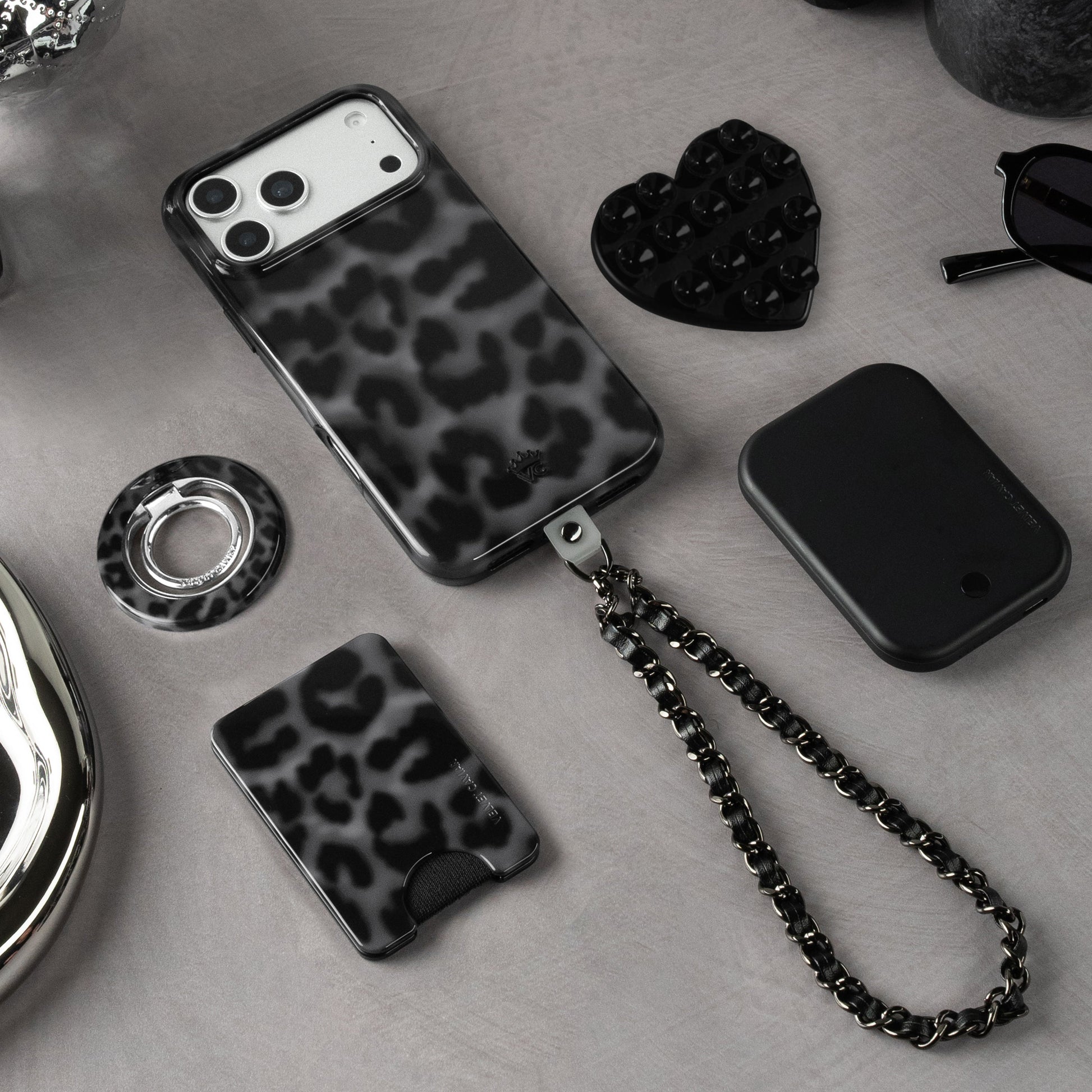Blackout Leather Chain Phone Charm
